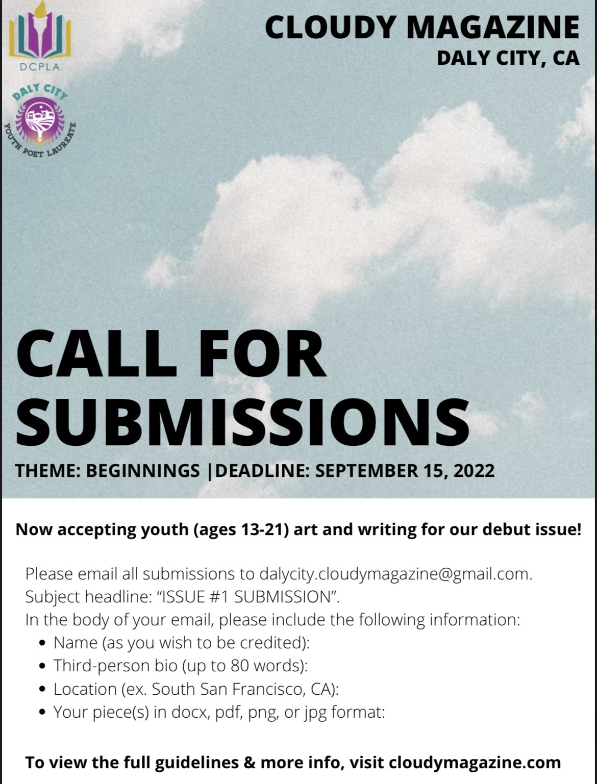 Dalycitygov On Twitter There Is A Call For Editors And Submissions For The New Cloudy Magazine Created As Part Of The Daly City Youth Poet Laureate Program And Sponsored By The Daly